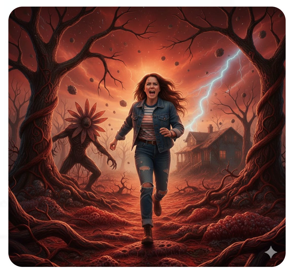 .(Gemini depicting someone who is supposed to look like me in the Upside Down - AI is a work in progress!)
